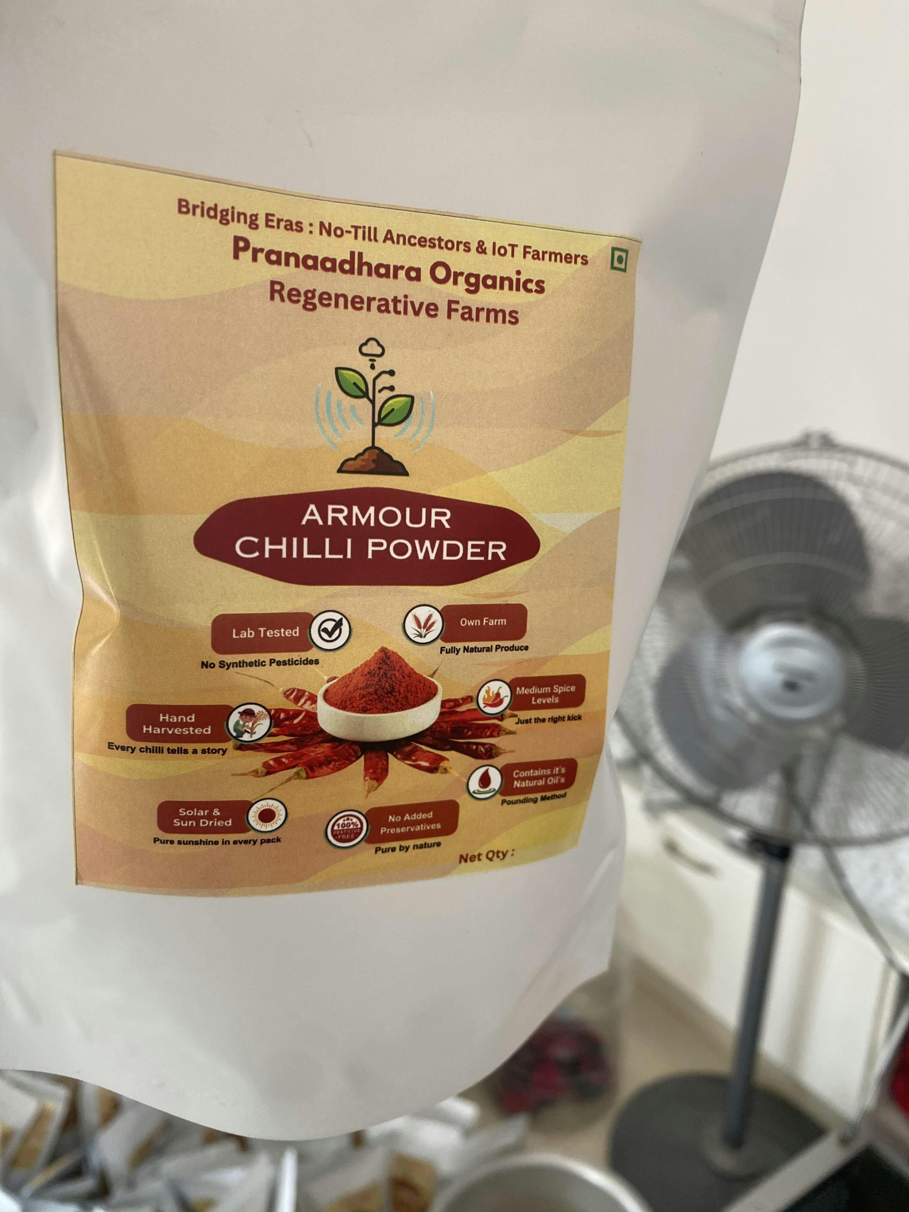 Armoor chilli powder . After long time I found best quality organic chilli powder. Previously I used buy chilli powder from one famous lady ,, but that not at all spicy , but pranadhara product is fantastic